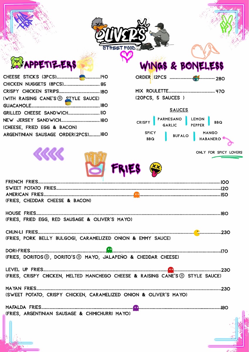 Sauces: Crispy, parmesano garlic, lemon pepper, bbq, spicy bbq, búfalo, mango habanero